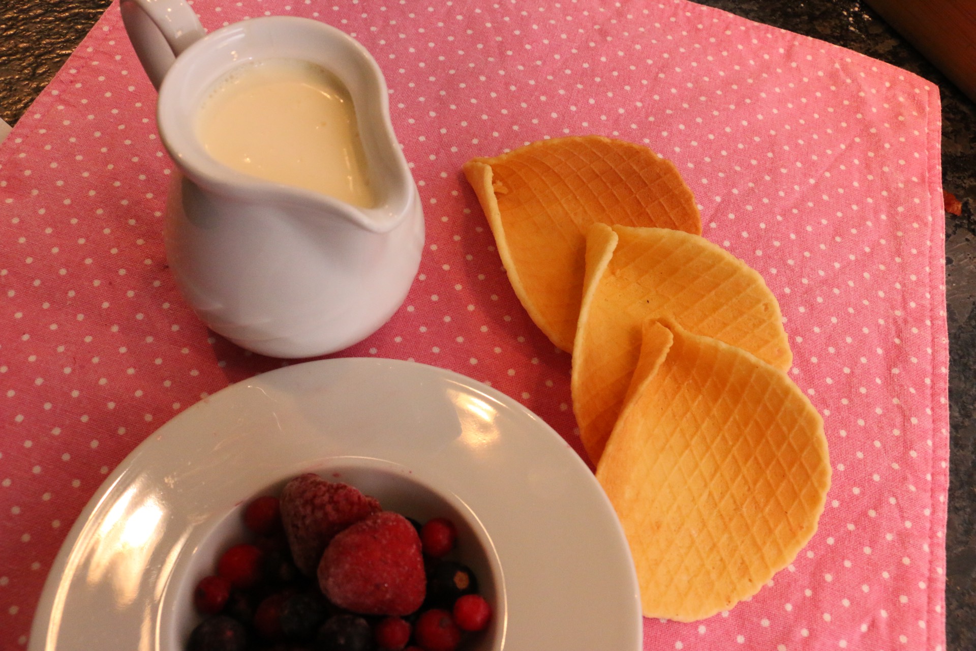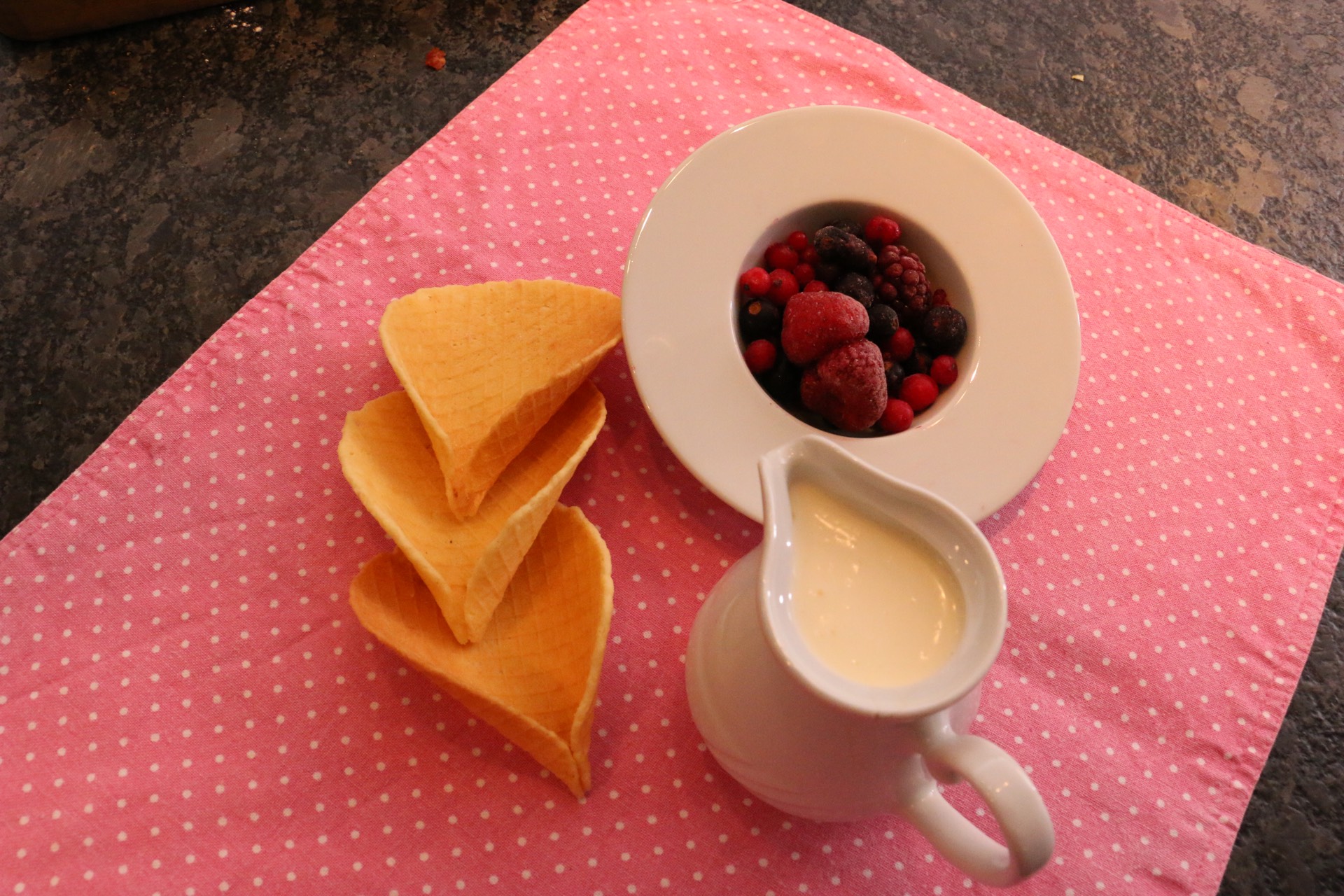 - Die heißen Küchlein sofort zum Formen in einen Trichter rutschen und auskühlen lassen.