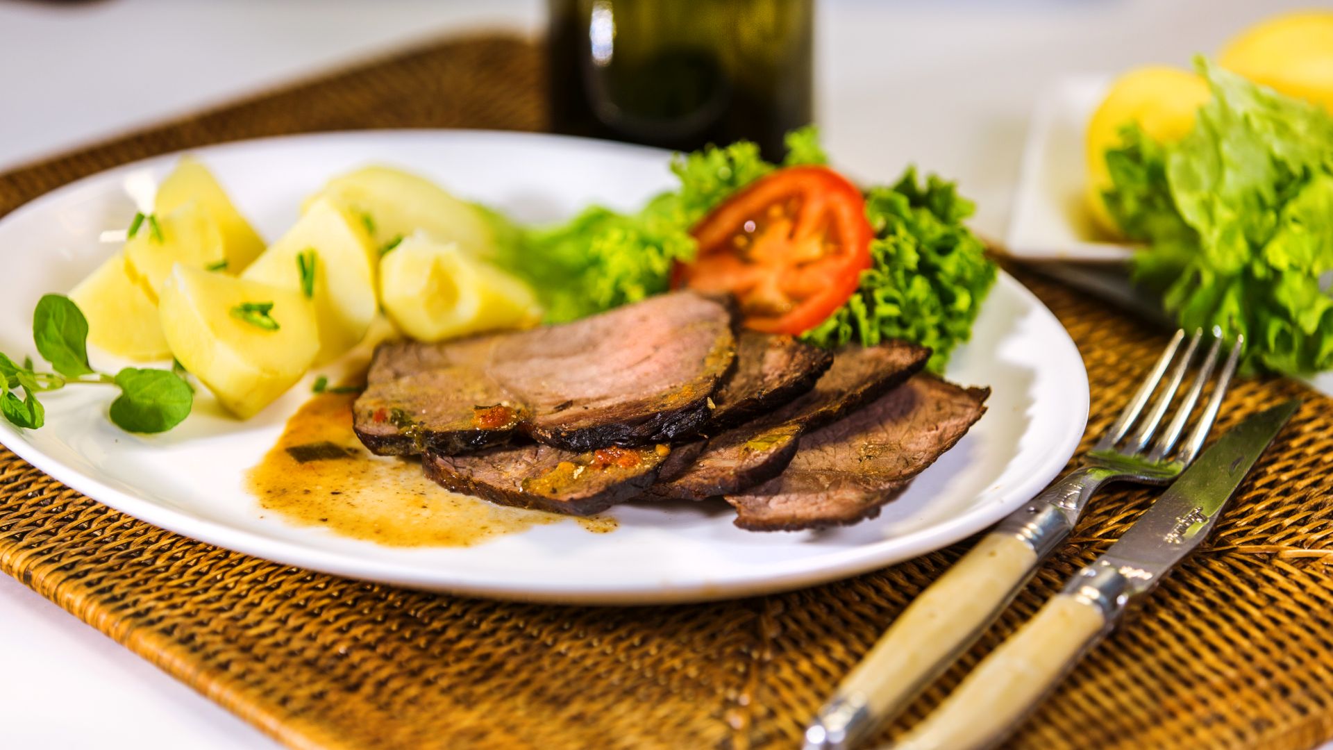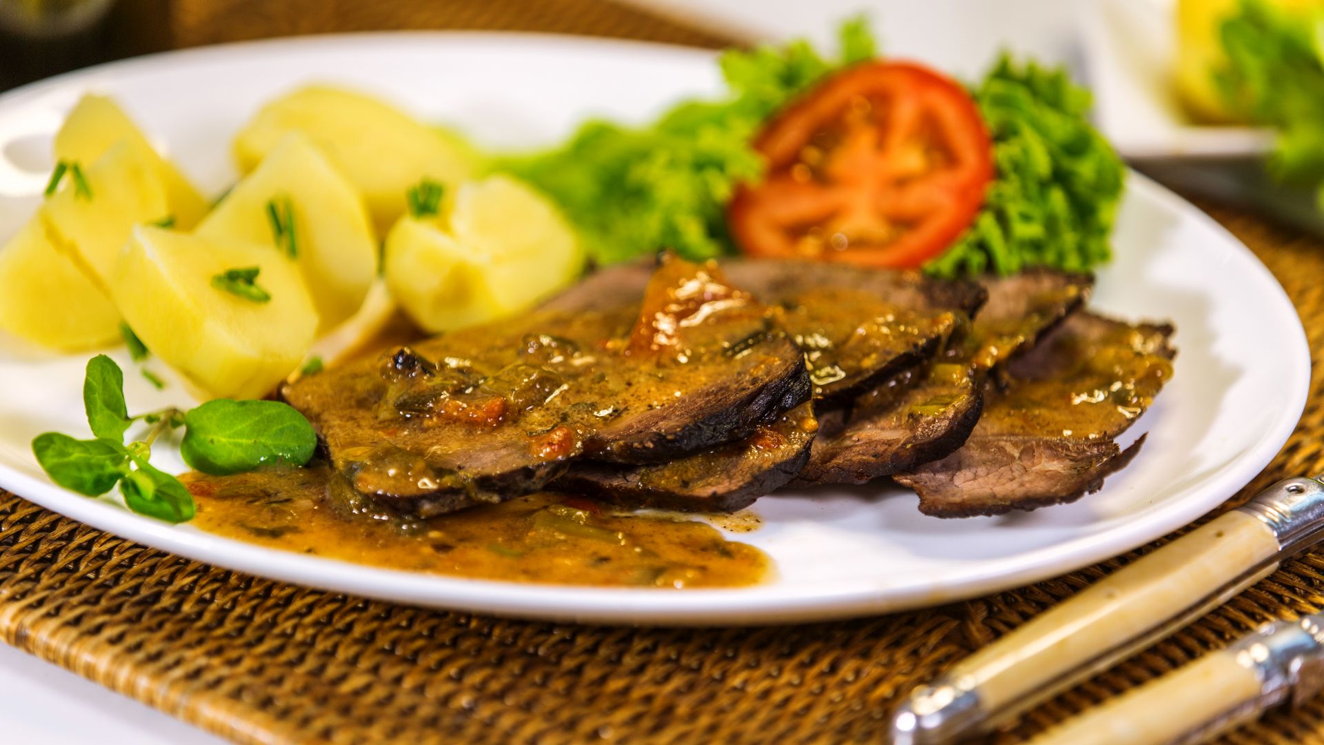 - Der Braten muss 6-8 Stunden bei Zimmertemperatur oder 12-24 Stunden abgedeckt im Kühlschrank marinieren. Dabei mehrmals wenden.