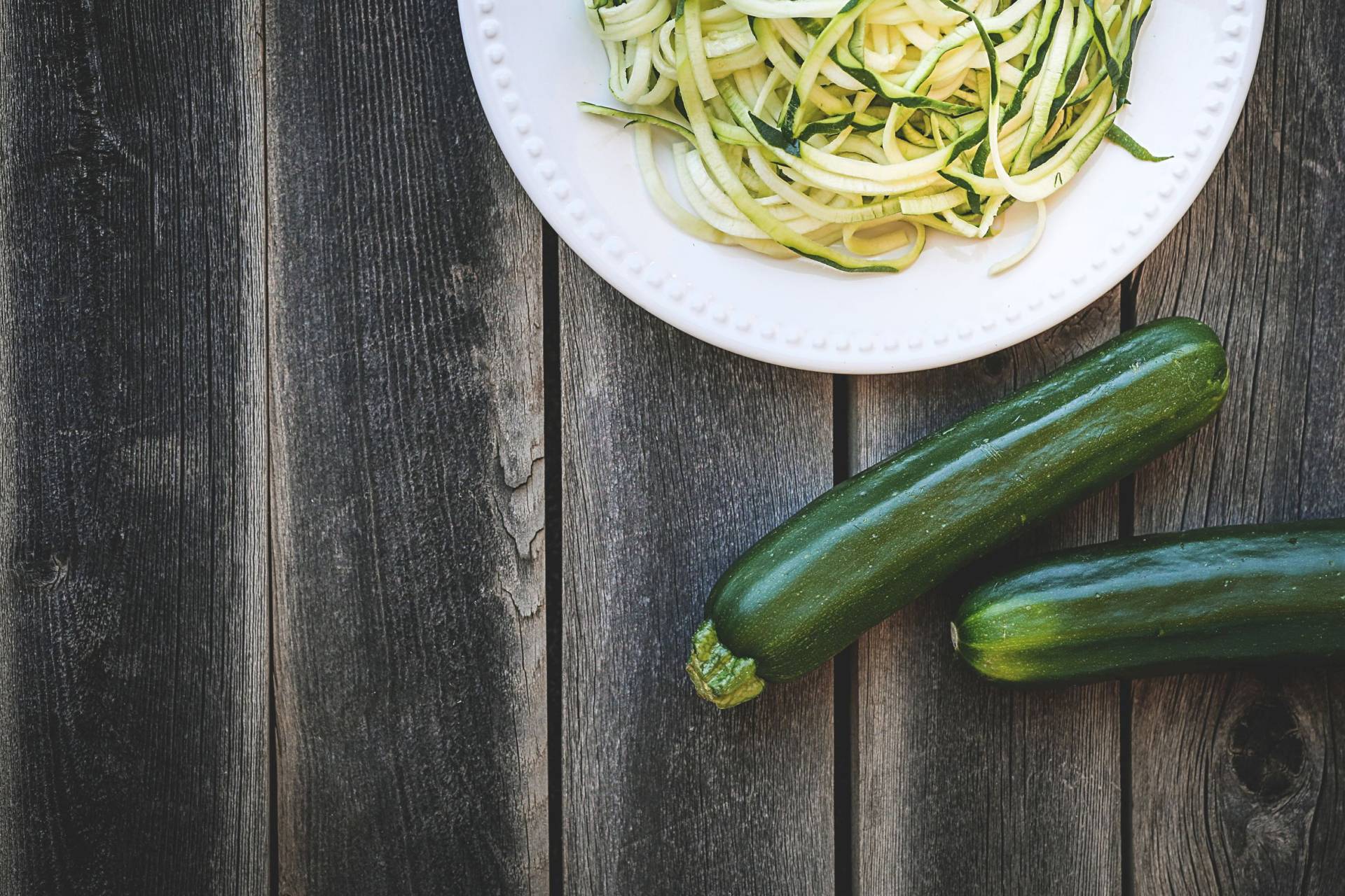 - In der Zwischenzeit die Zucchini putzen und mit Hilfe eines Sparschälers rund um die Kerne in lange Streifen schneiden.