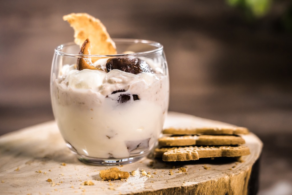 • 10 Spekulatius in Amaretto oder Milch einweichen und zerdrücken, dann mit dem Magerquark verrühren.