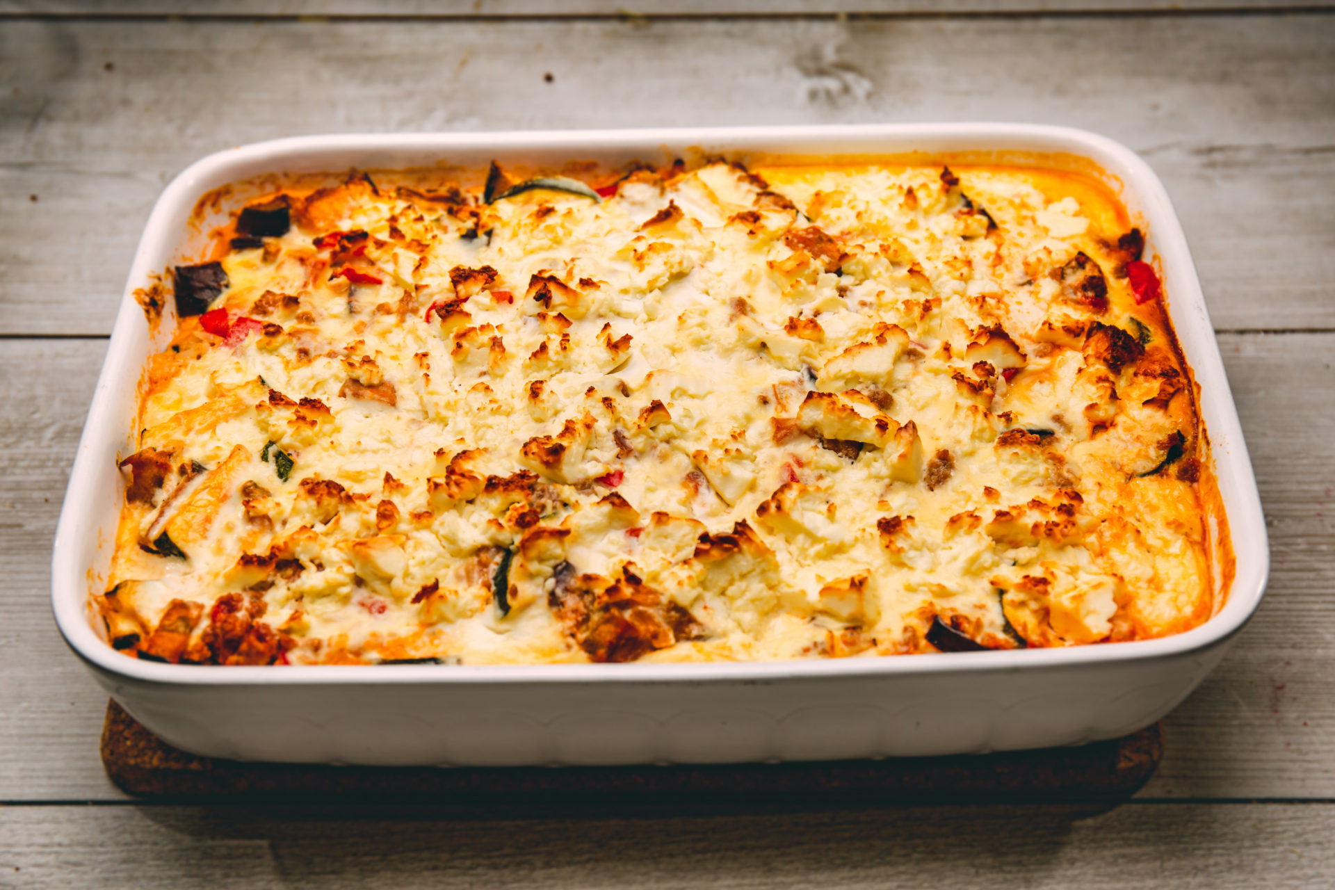 Reis-Gemüseauflauf mit Hackfleisch und Hirtenkäse