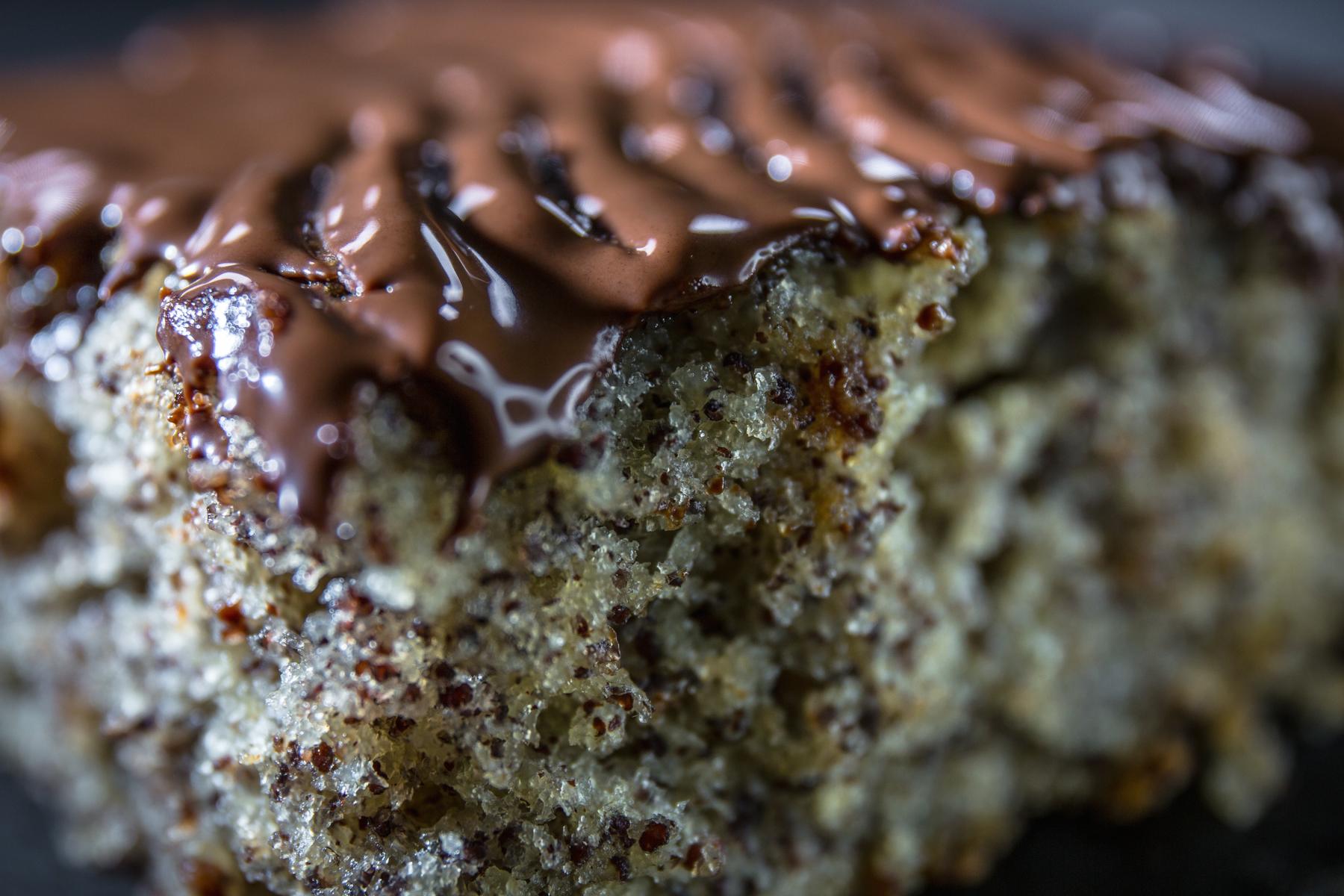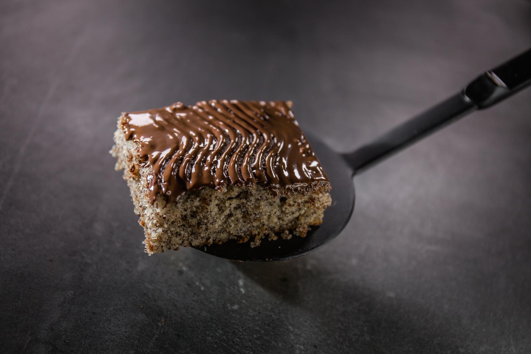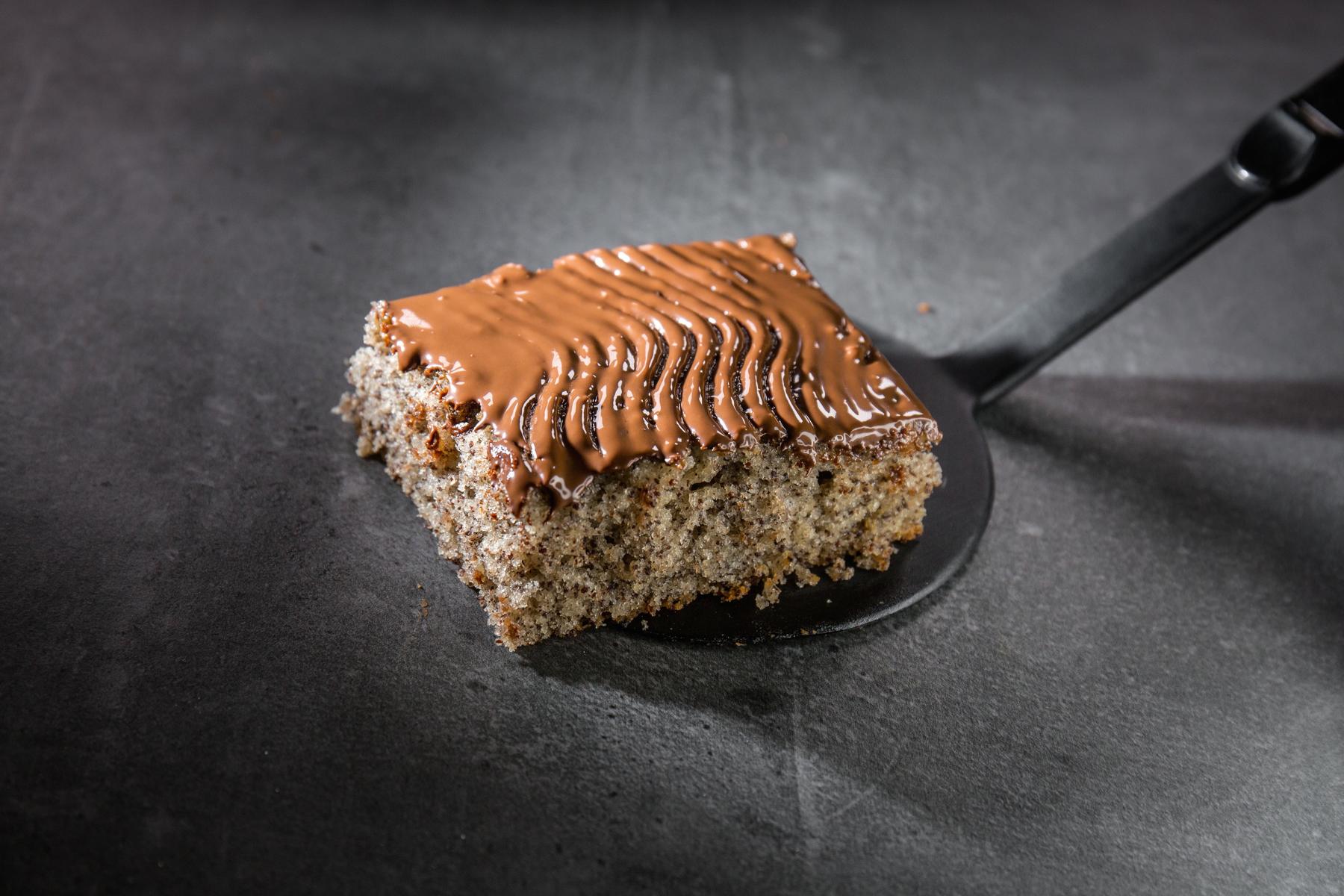 - Die Kuvertüre im Wasserbad schmelzen und auf dem erkalteten Kuchen verteilen.