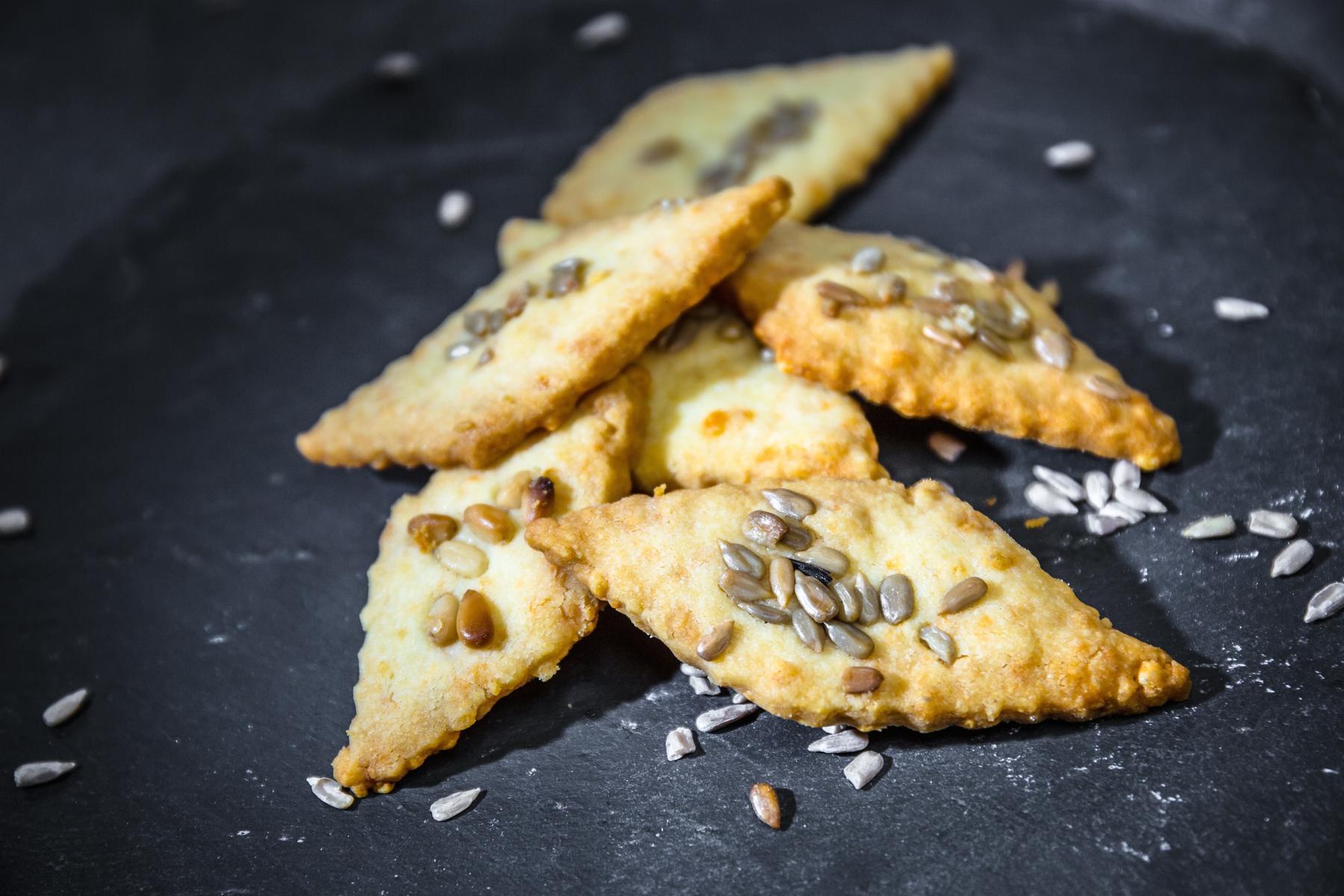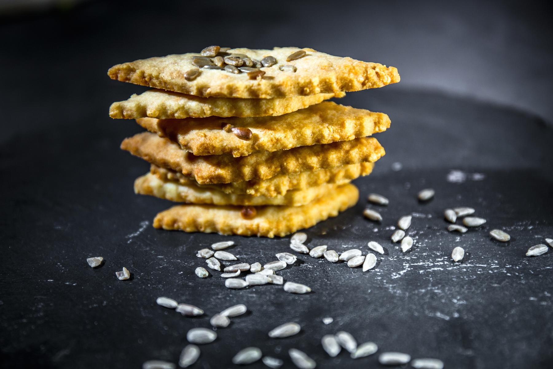 - Die Plätzchen auf ein gefettetes Backblech legen und mit etwas Kümmel oder Sonnenblumenkernen bestreuen.