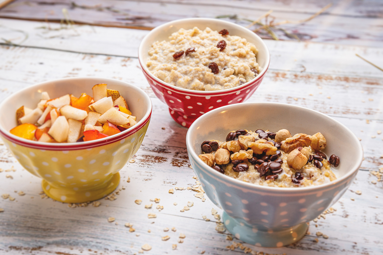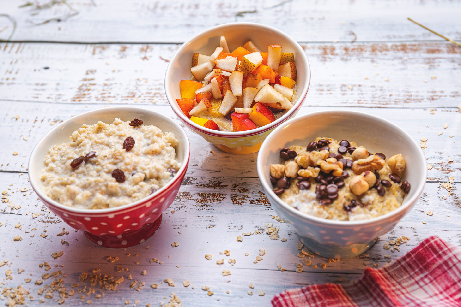 Dazu passen Früchte oder Beeren der Saison, Apfelmus, Nüsse, Samen, Schokostreusel, Rosinen oder andere getrocknete Früchte.