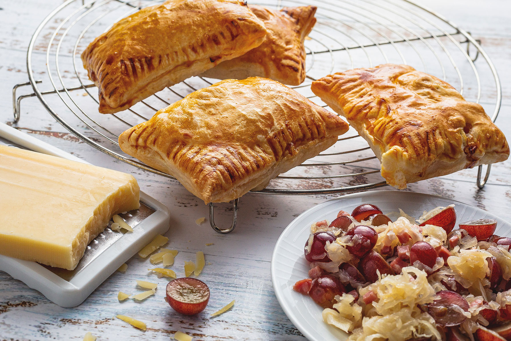 Blätterteigtaschen mit Sauerkraut und Weintrauben