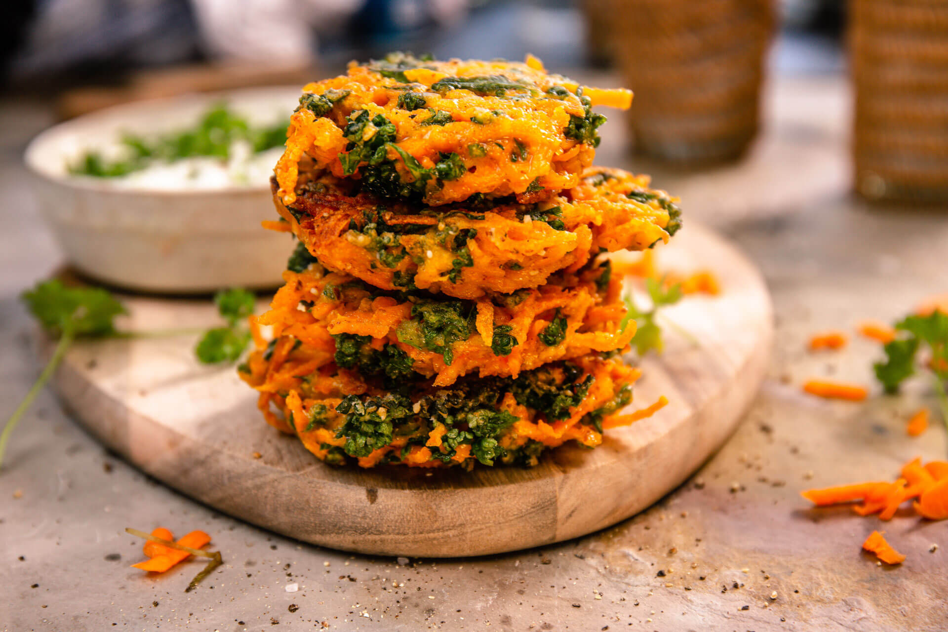 Möhrenröstis mit Schnittlauchquark