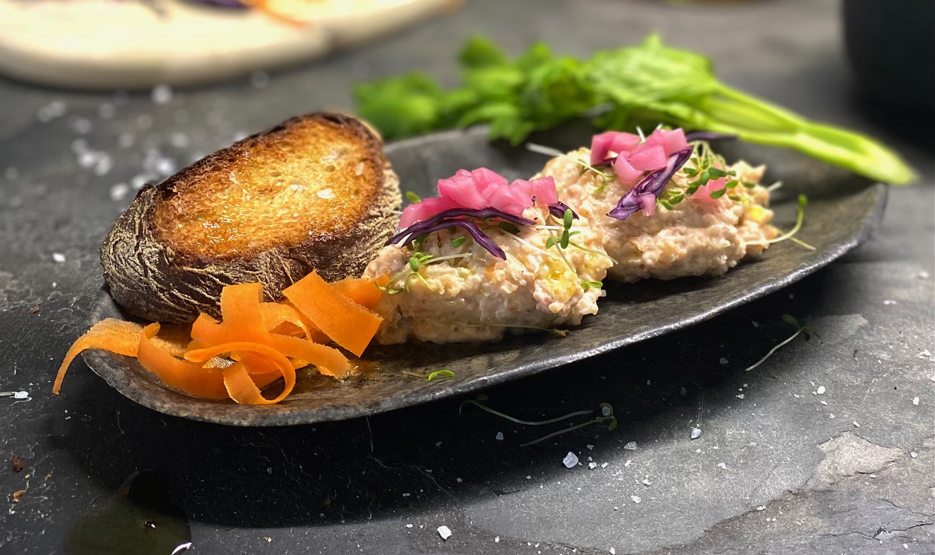 - Den Meeresfrüchte-Dip mit den gepickelten roten Zwiebeln anrichten und dazu nach Wunsch frische Gemüsesticks z.B. Möhren oder Stangensellerie und geröstetes Brot servieren.