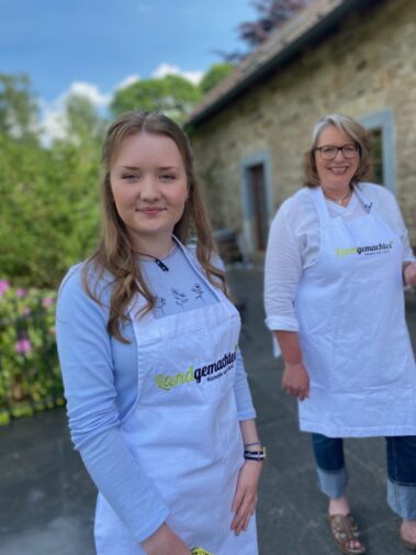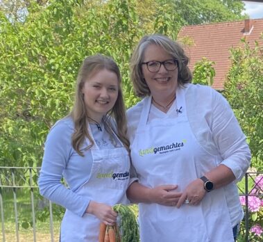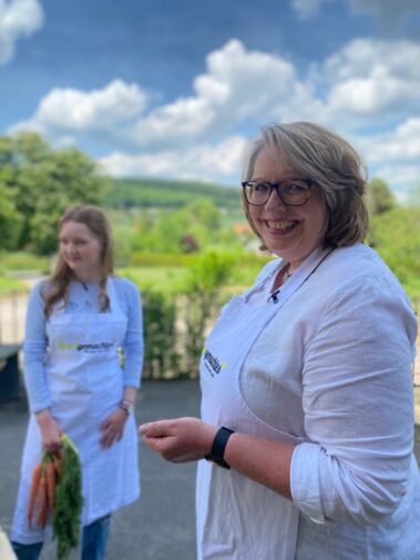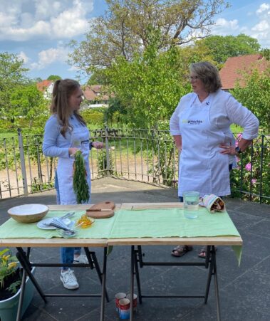 Leonie, Studentin aus Düsseldorf, ist heute zu Gast bei Landgemachtes und unterstützt unsere Landköchin Conny beim Kochen. Zusammen bereiten sie einen sommerlichen Kartoffelsalat mit Möhren, Lauch, Äpfeln und Frühlingszwiebeln zu. Dazu gibt es ein leichtes Joghurtdressing.
