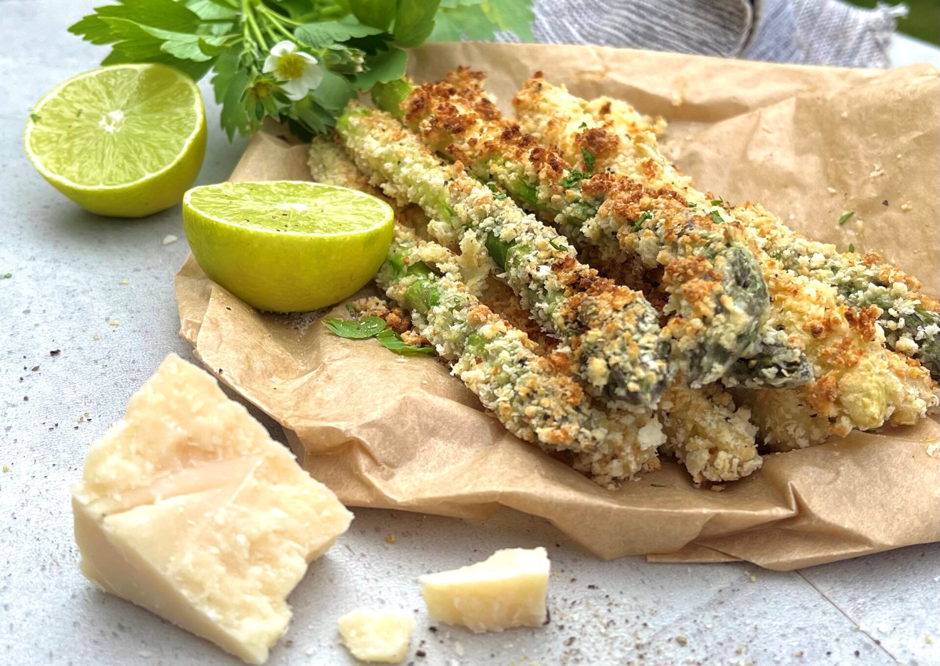 • Knusperspargel mit frischer Zitrone, Kräuterquark oder einer leichten Hollandaise servieren. Passt gut als Vorspeise oder Beilage zu Fisch oder Hähnchen.