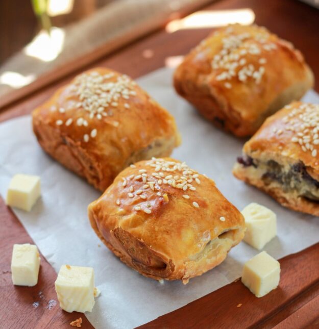 Blätterteigtaschen mit Hackfleisch, Spinat & Mozzarella
