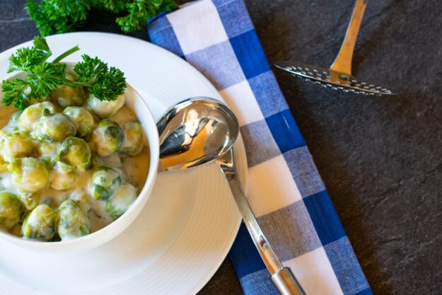 Rosenkohl ist ein Evergreen in der deutschen Küche. Annette kocht ihn heute in einem Rahm aus Crème fraîche, der rundet den – für manche zu starken – Kohlgeschmack perfekt ab.
